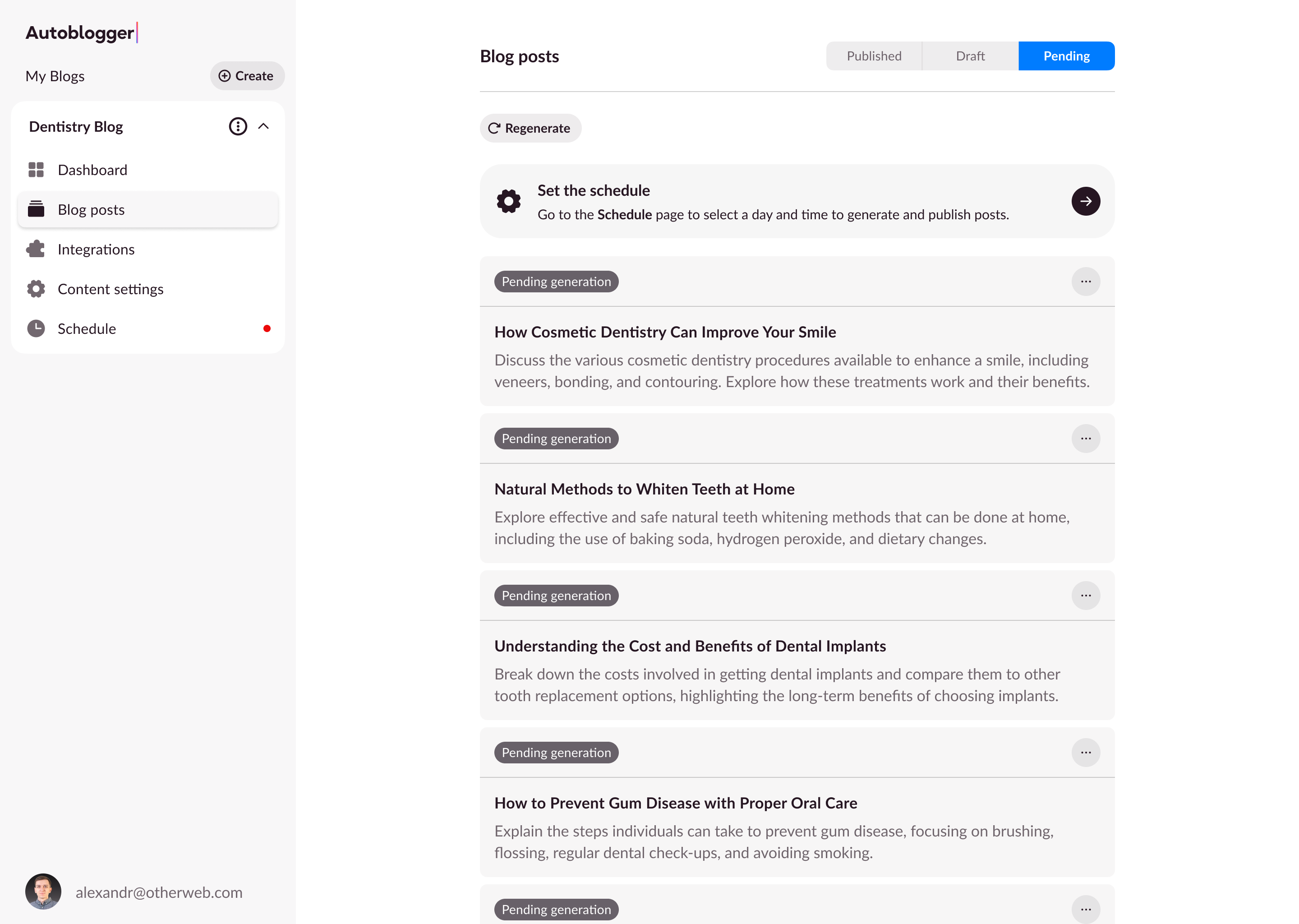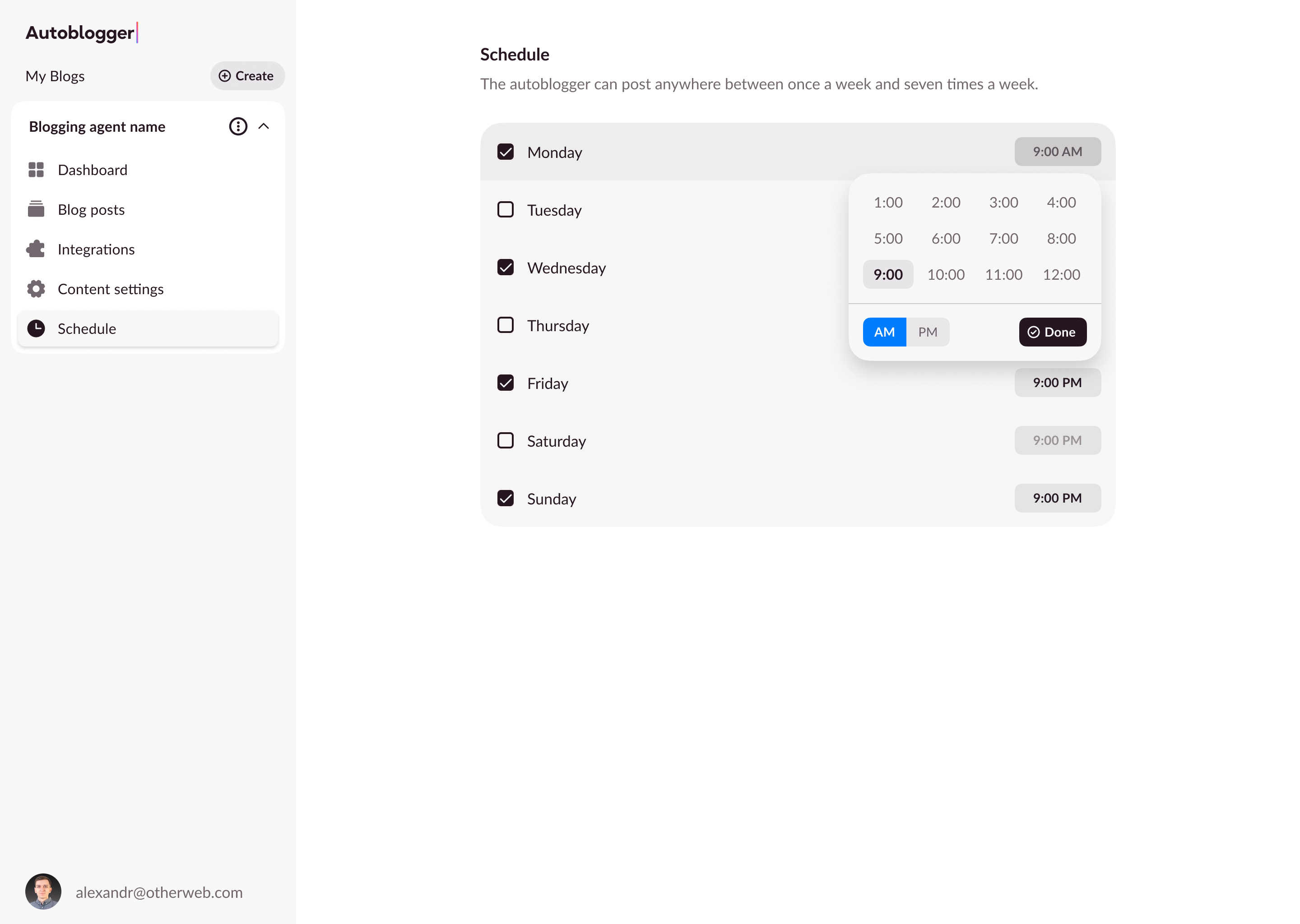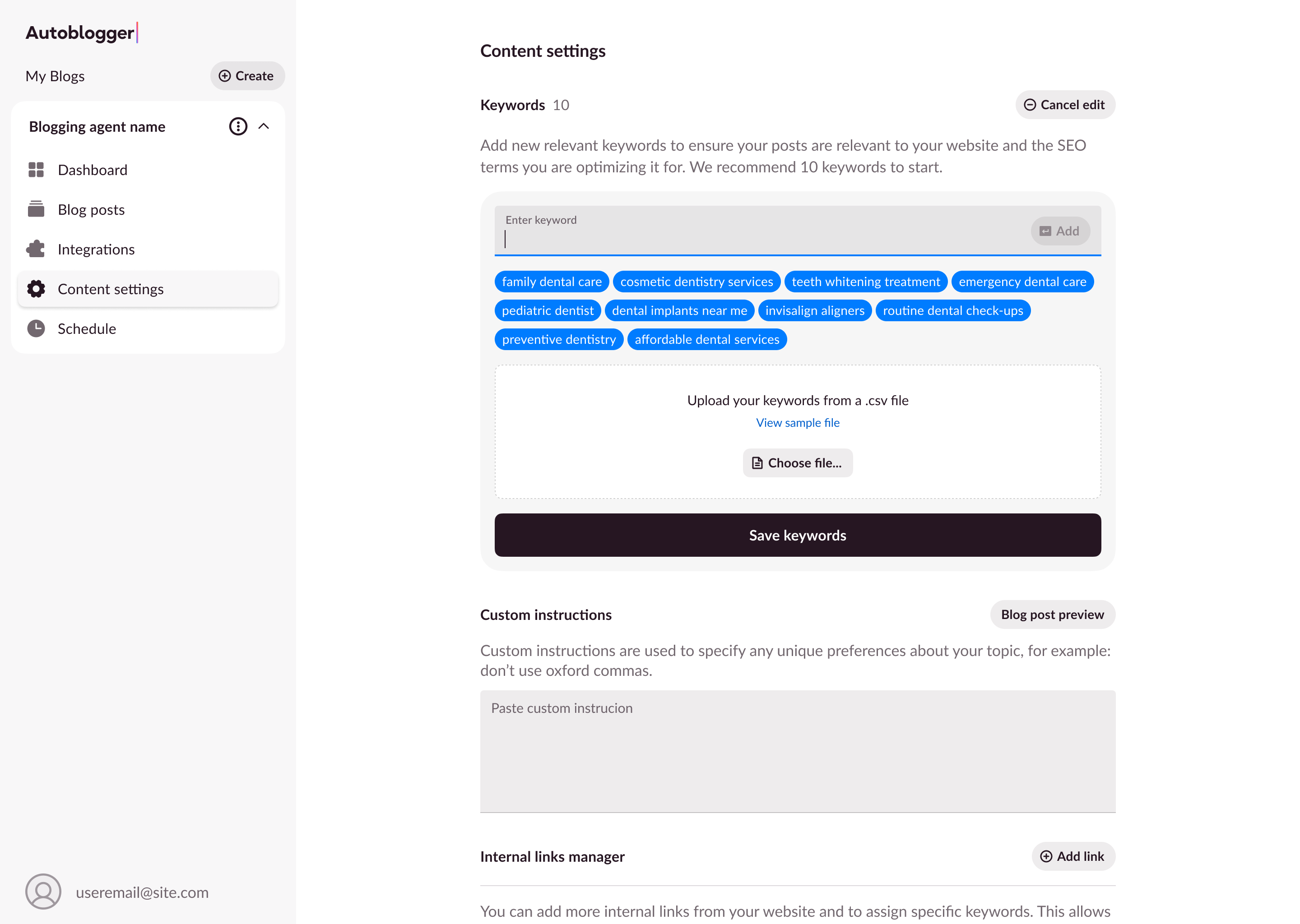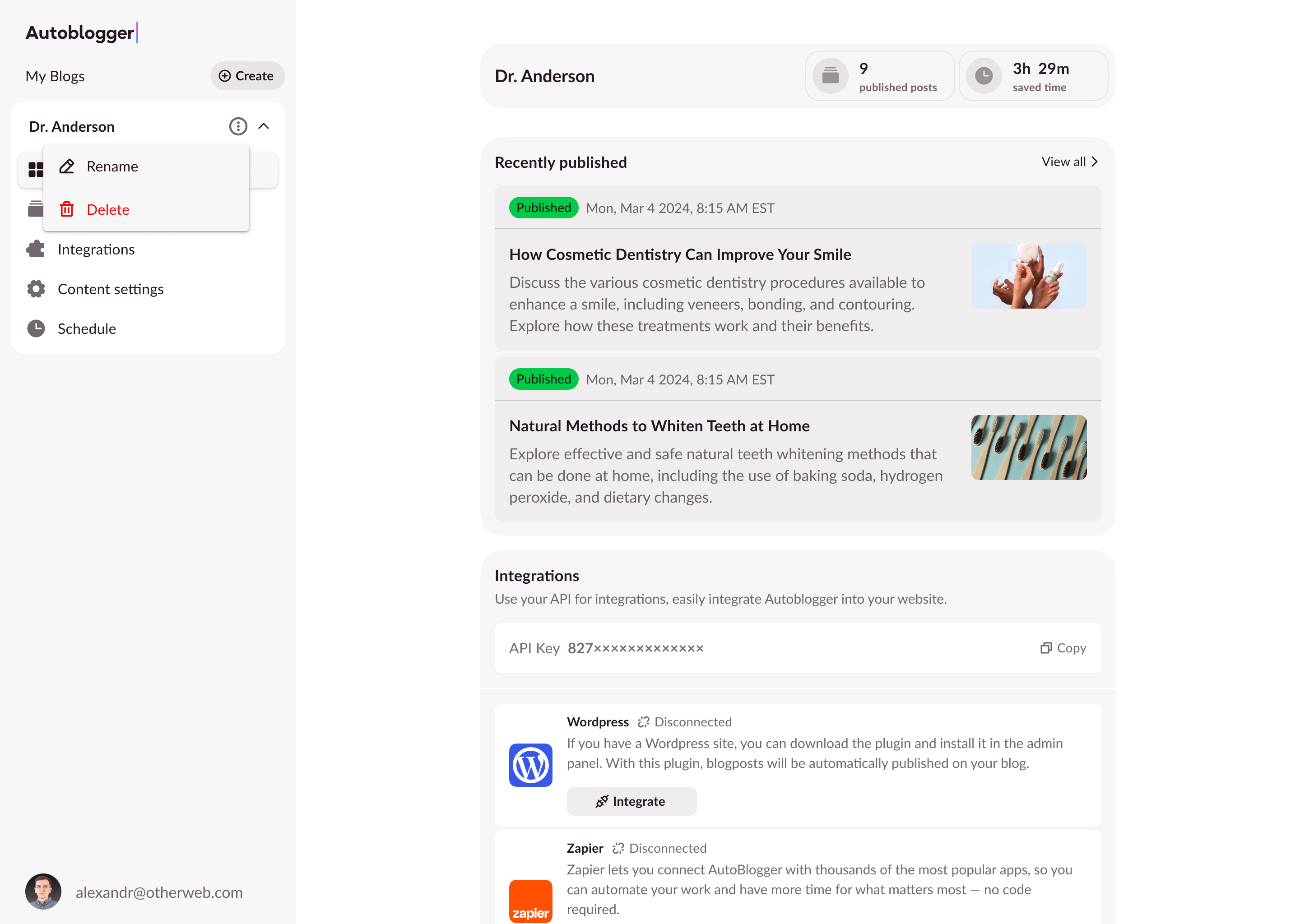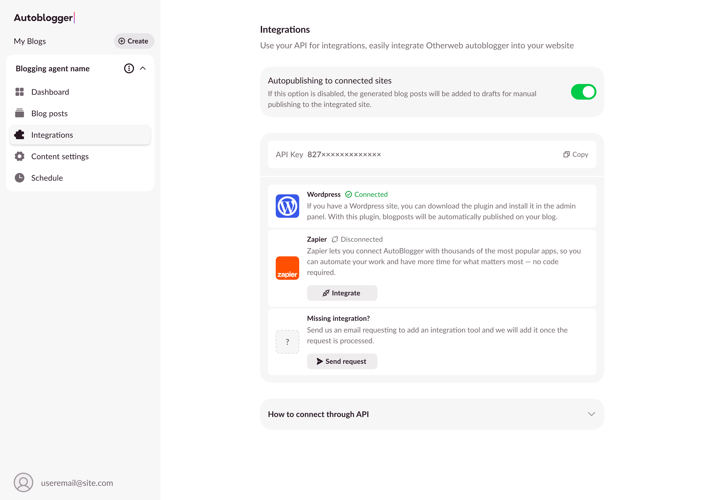 With Autoblogger, those problems disappear. After a simple one-time setup (with minimal maintenance if needed), your blog is no longer a hassle that eats up your time and resources. Let AI handle it for you.