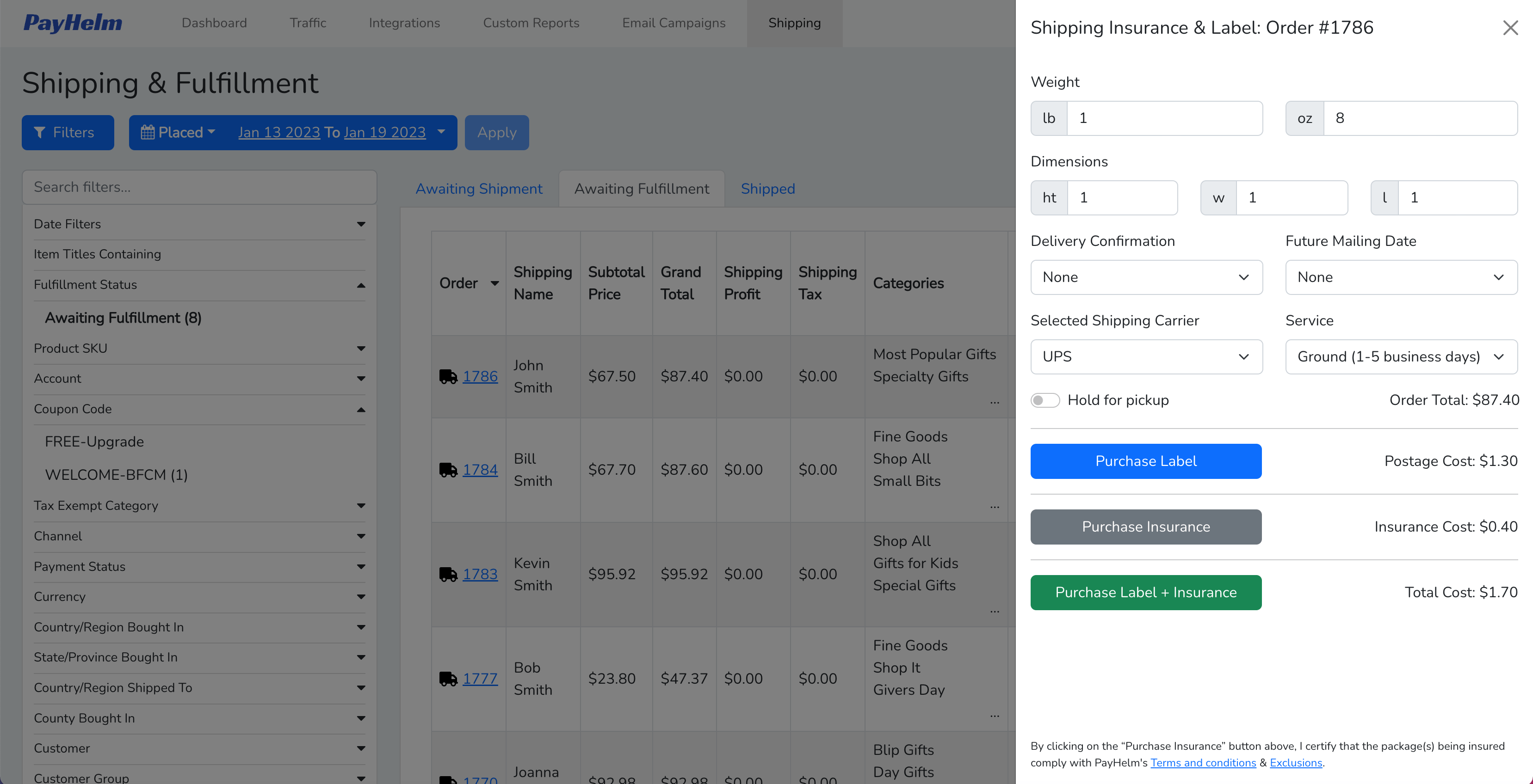 - See data from ShipStation including shipping label cost, shipping insurance, and related shipping info